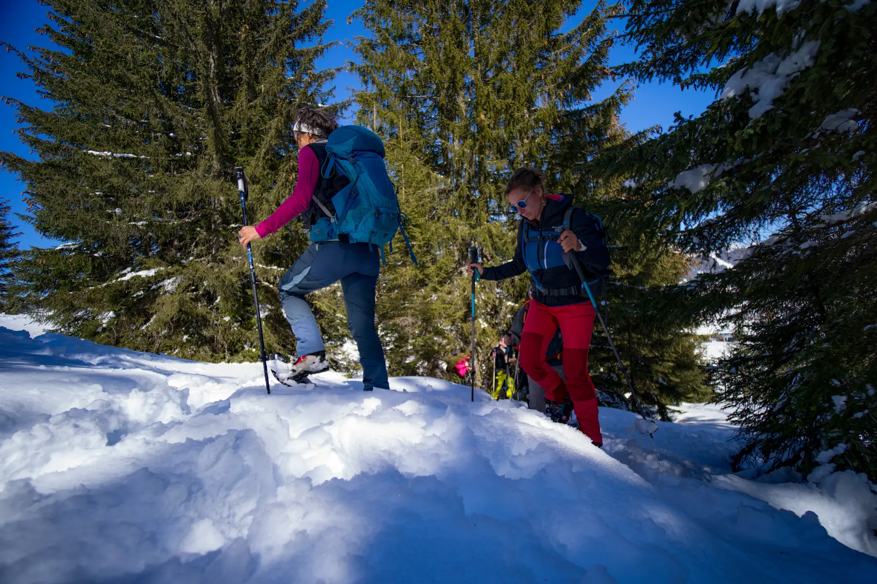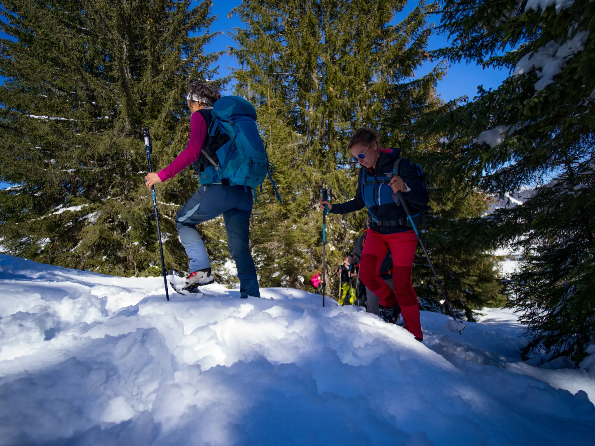 Experience the magic of the forest, where the snow is often powdery and sparkling and the view clears to allow us to admire the surrounding mountains.